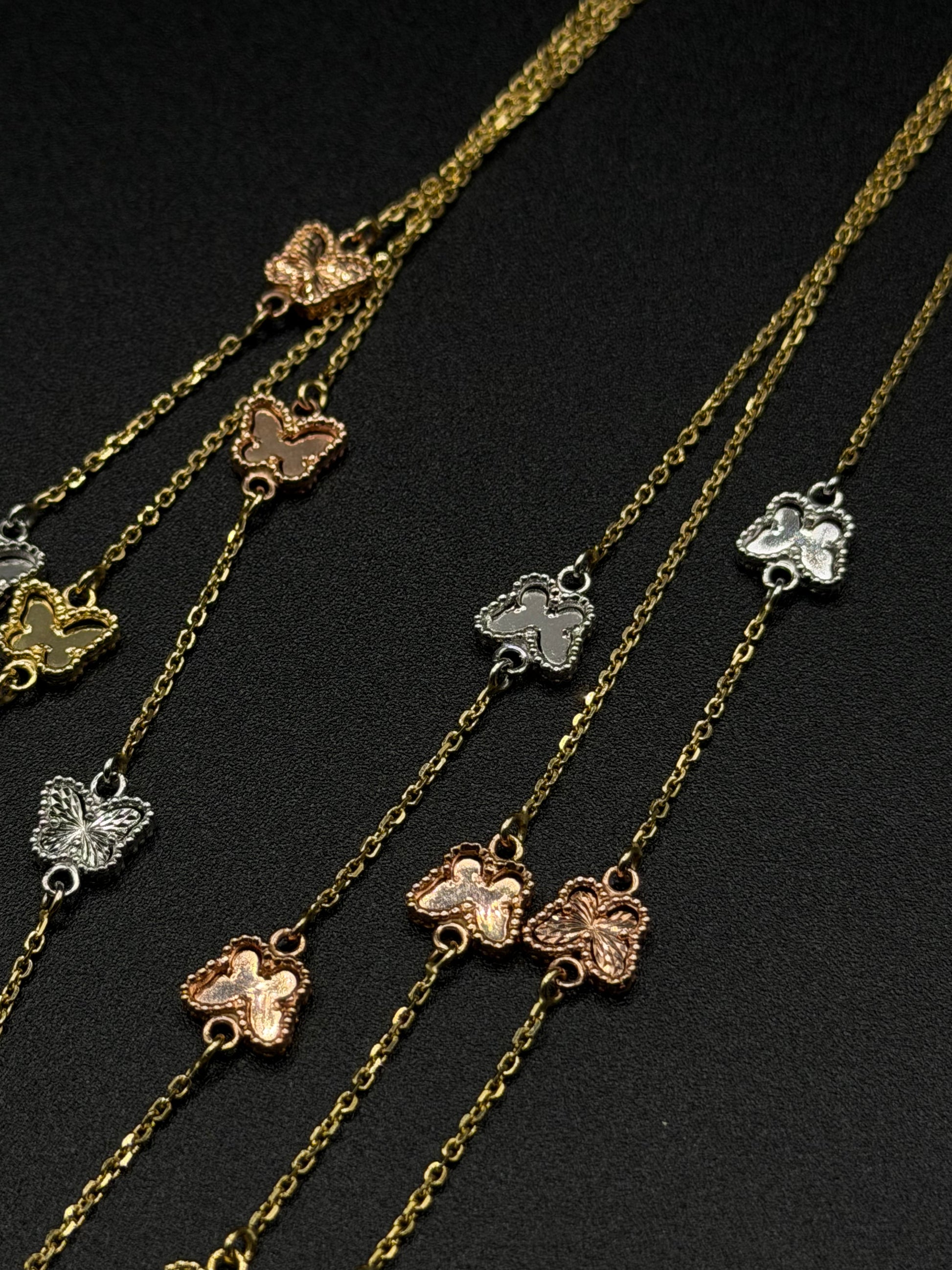 3 Tone Butterfly Necklace with Rolo Links IN SOLID 14K GOLD