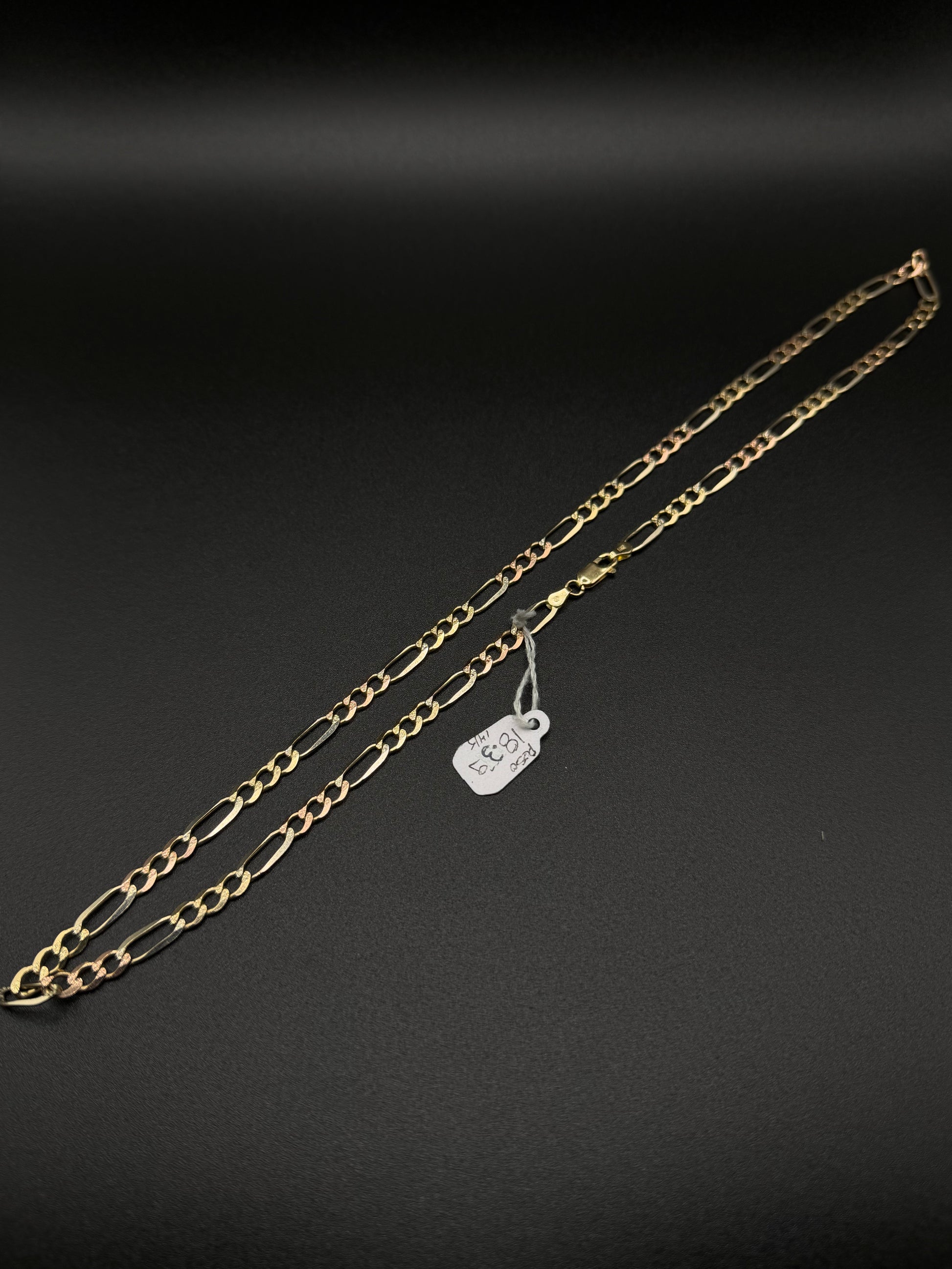 3 Tone Diamond Cut Figaro Chain IN SOLID 14K GOLD