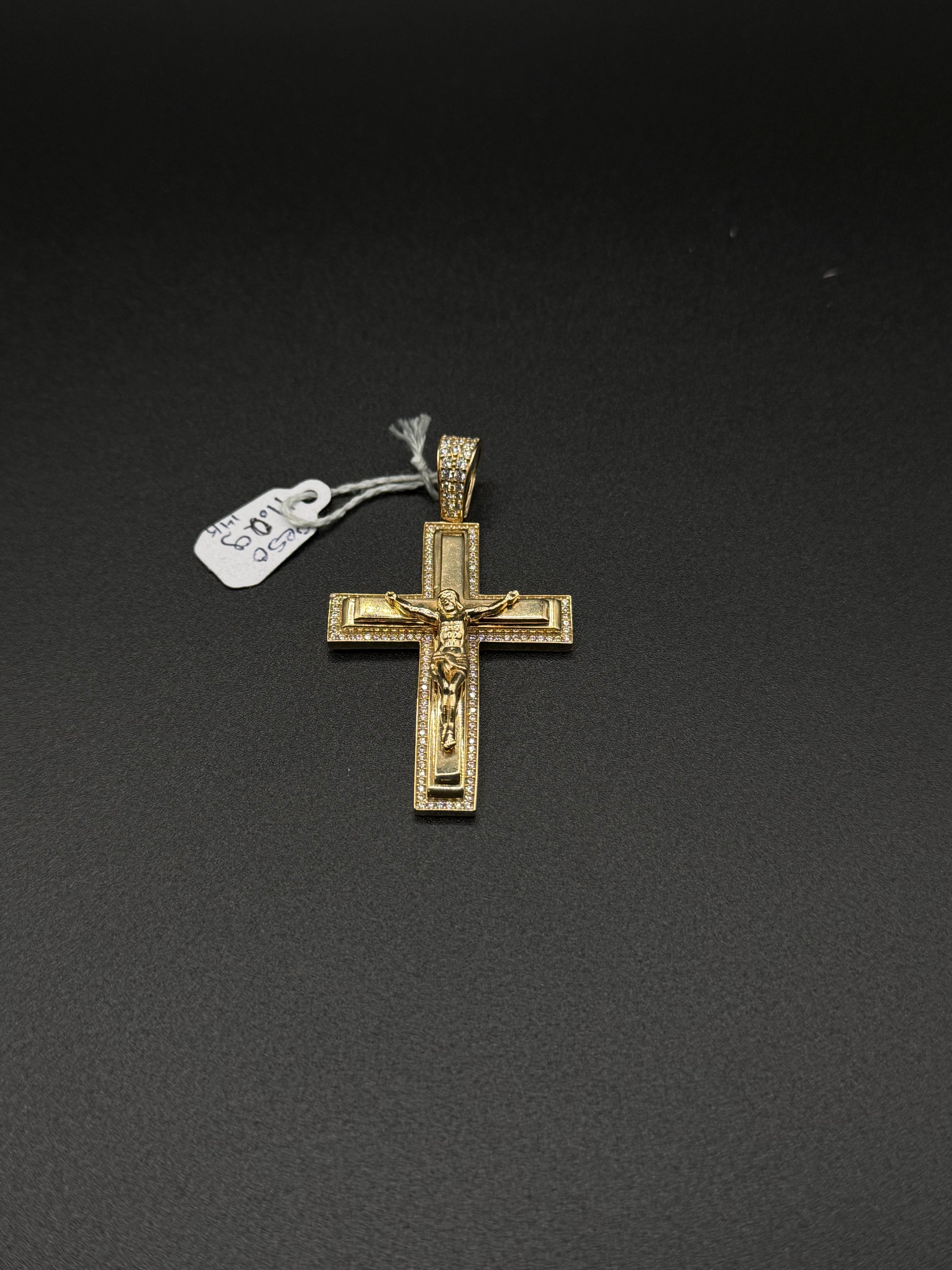 Crucifix Pendant with CZ Border IN SOLID 14K GOLD