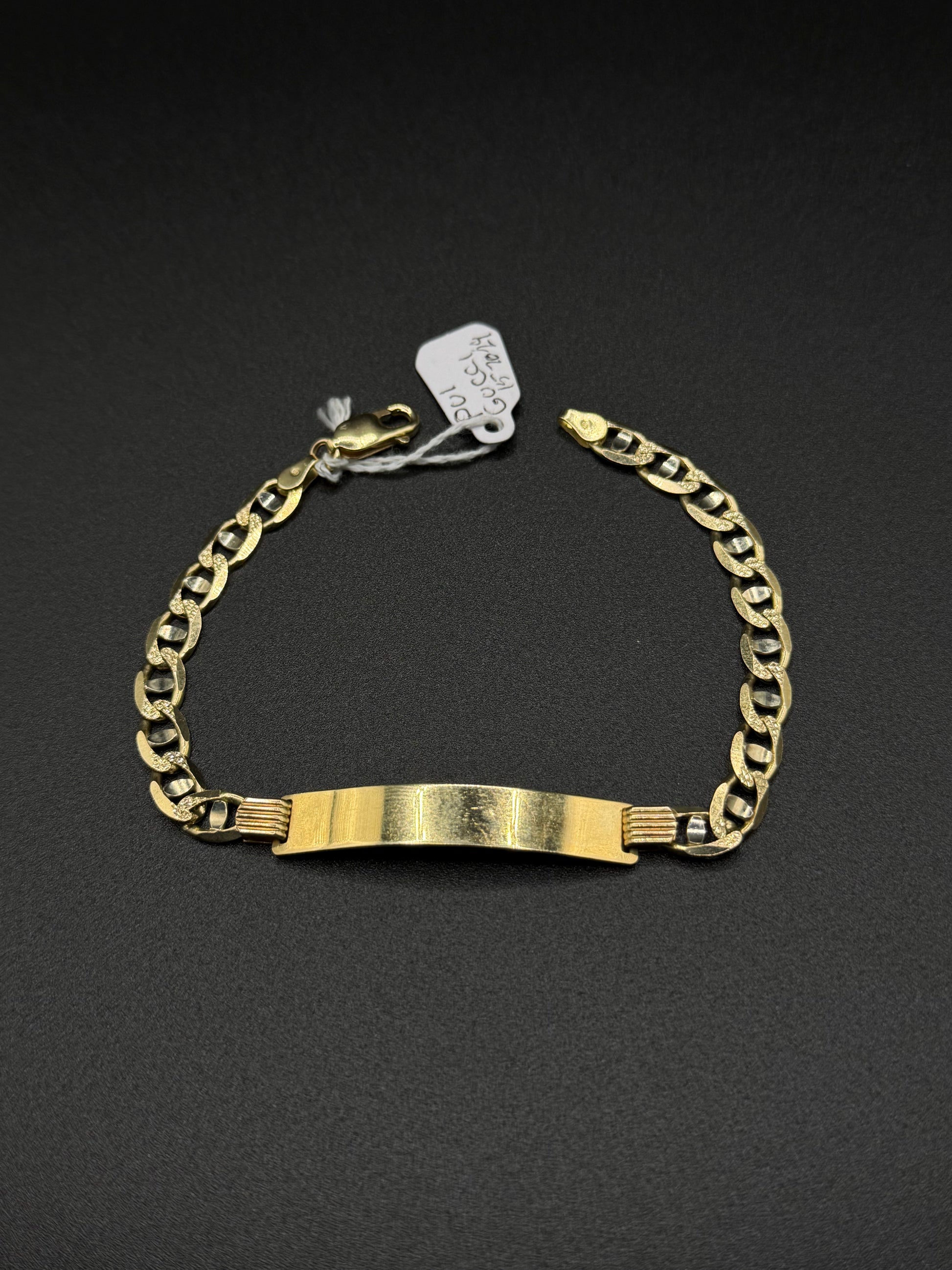 ID Bracelet With Two Tone Diamond Cut Gucci Links IN SOLID 14K GOLD