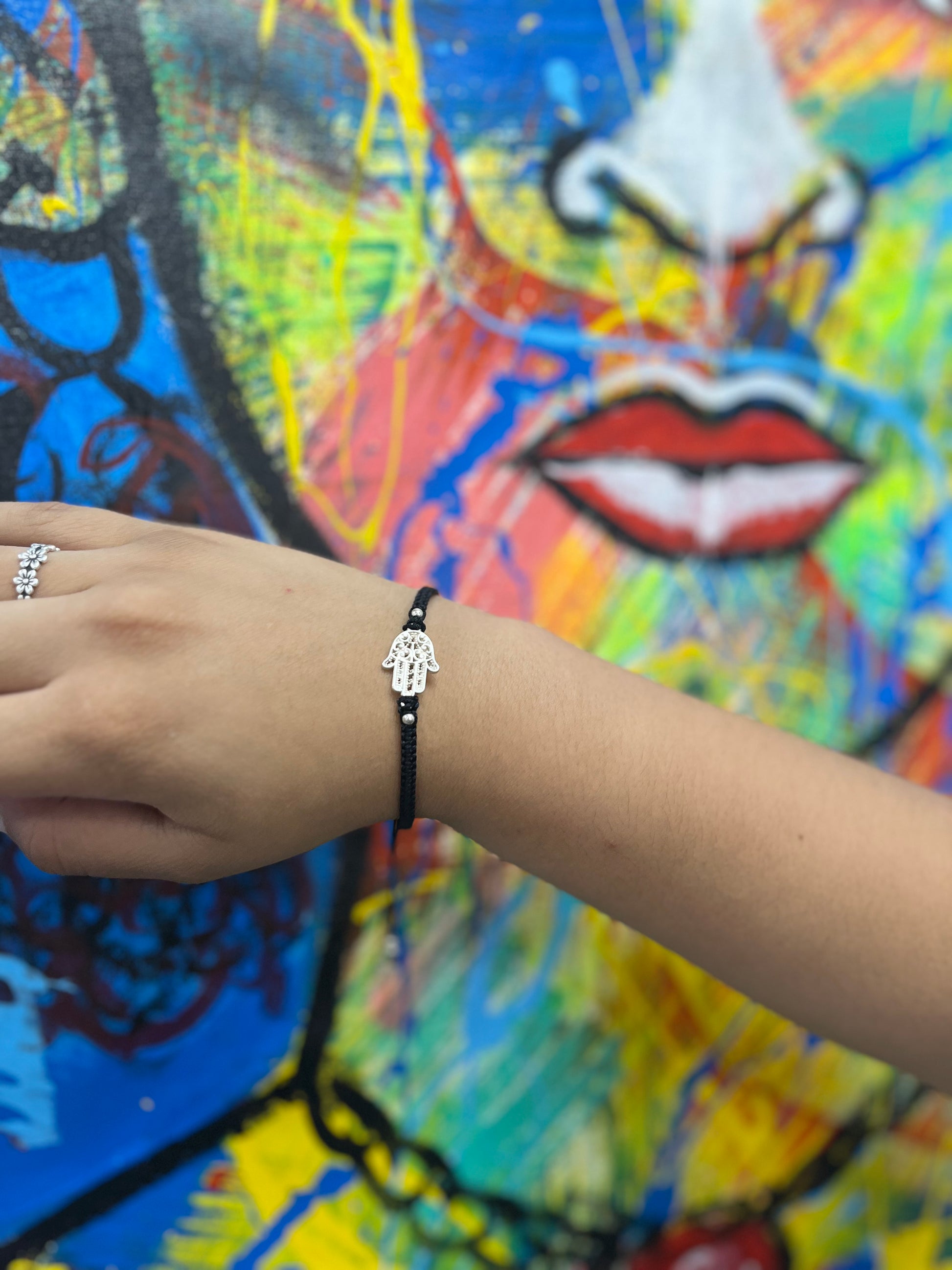 Hand of Fatima in 925 Silver on a Woven Bracelet