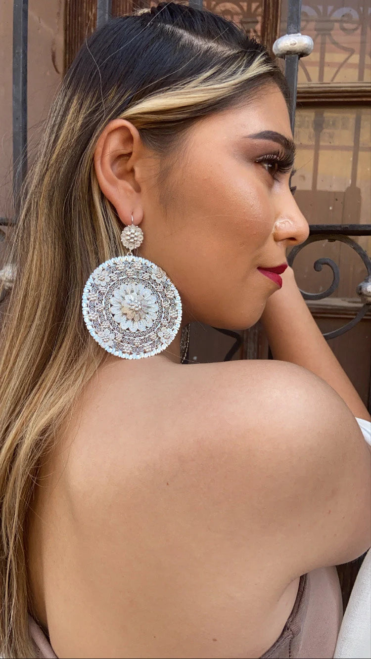 Lo más innovador en Arracada Jerezana, elaboradas completamente a mano, por artesanos mexicanos en Jerez Zacatecas, México. 9CM, 23.5G peso por arracada.